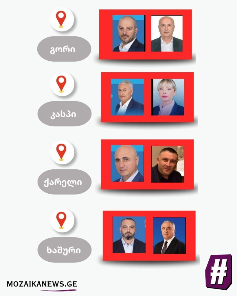 8 ოპოზიციური პარტიის ბოიკოტის ფონზე, შიდა ქართლის ოთხივე მუნიციპალიტეტში მერობის ორ-ორი კანდიდატია რეგისტრირებული. ცესკოს ცნობით, “ქართული ოცნების” კონკურენტებად მერობის კანდიდატები წარადგინეს პარტიებმა “ლელომ”, “თავისუფალმა საქართველომ”, “გახარია საქართველოსთვის” და საინიციატივო ჯგუფმა.
